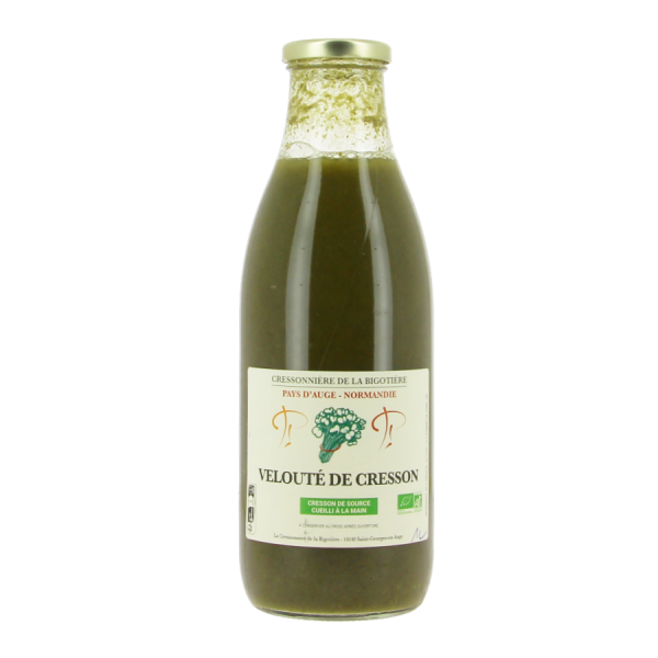 Velouté bio de cresson, préparé à partir de cresson frais de qualité.