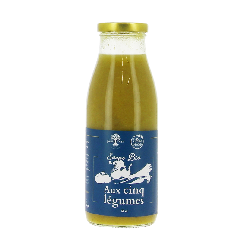 Soupe bio au potimarron Préparée avec des ingrédients issus de l’agriculture biologique Les jardins du CEP Bouteille verre 50cl