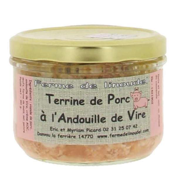 Terrine à l'Andouille de Vire Les terrines d'Augustine par La Chaiseronne (50) Réalisée avec du porc à la farine d'orge Sans colorant, sans conservateur et sans gluten