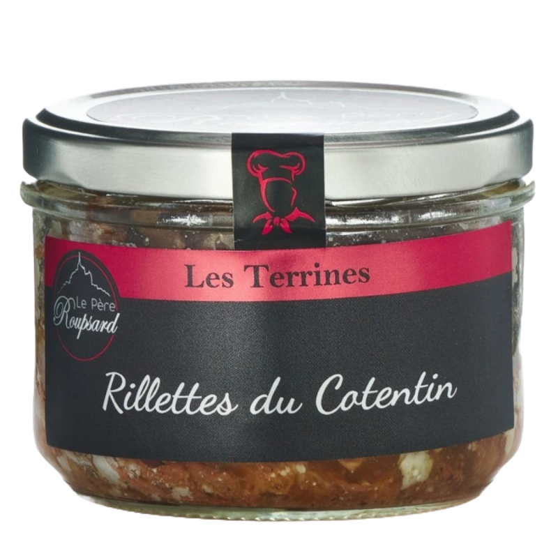 Les rillettes du Cotentin artisanal préparées par la charcuterie du Père Roupsard est une recette traditionnelle du cotentin dans la Manche. C'est une forme de rillettes onctueuse avec du porc haché grossièrement et de l'échalotte. Un vrai délice du terroir Normand !