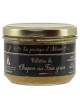 Foie de chapon origine France 40%, poulet origine France, oeuf, oignon, crème, calvados 2%, fécule de pomme de terre, sel de Guérande, poivre, muscade.