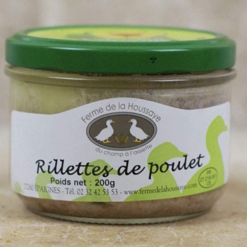 Des délicieuses rillettes de poulet réalisées à la ferme de La Houssaye par Franck et Christelle Lavigne à Epaignes dans l'Eure en Normandie. Une recette réussie à tartiner sur un pain encore tiède.