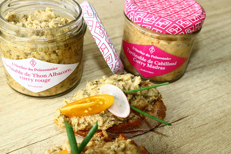 Tartinable de cabillaud, tourteau, wakamé L'Atelier du Poissonnier à Agon-Coutainville (Manche) Fabriqué en Normandie Conserve 90 gr