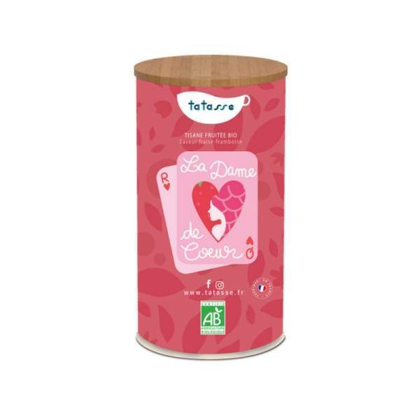 La Dame de Cœur est une tisane fruitée issue de l'agriculture biologique. À la saveur de fraise et de framboise, cette tisane dégage des notes sucrées et acidulées à la fois. La tisane Dame de Cœur combinent les différents arômes de fruits rouges parfaitement.