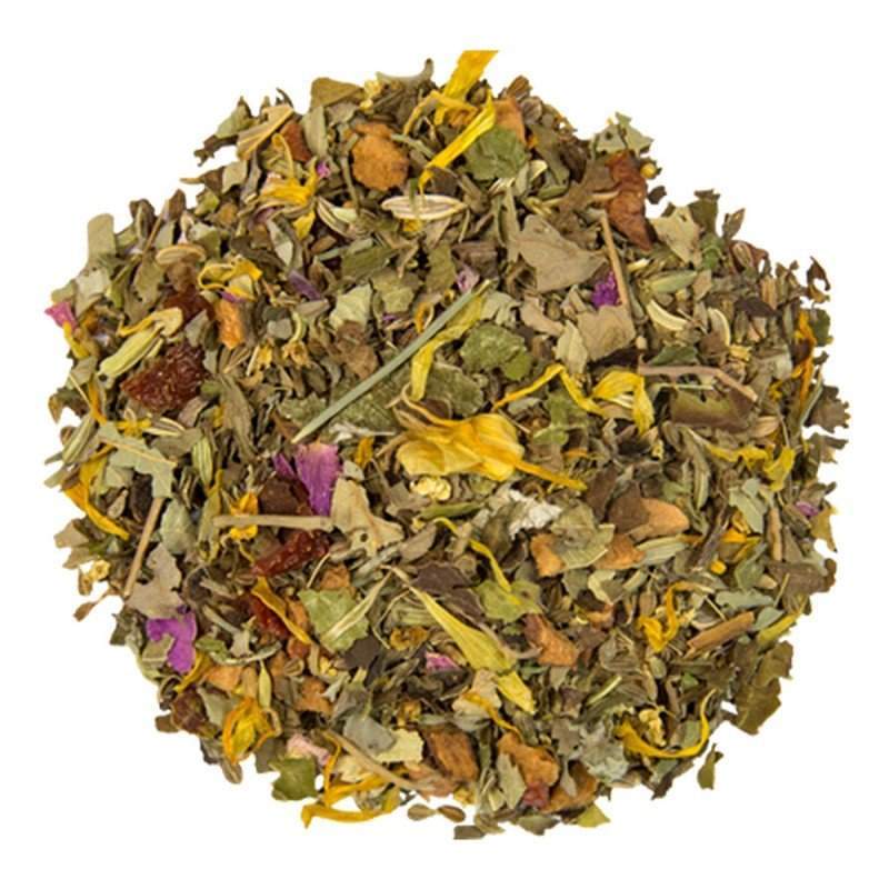 Fleurs d'hibiscus*, herbe de citronnelle*, écorces d'orange*, pétales de rose*. *issus de l'agriculture biologique contrôlée