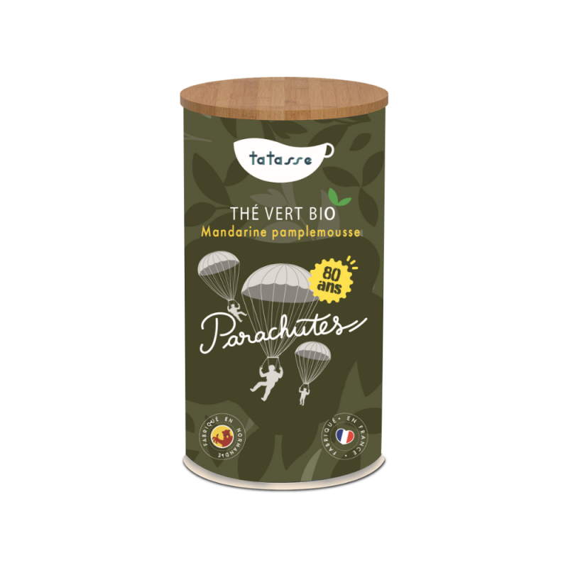 Le thé vert orange sanguine, grenade et mandarine est issu de l'agriculture biologique. Inspirée par le Débarquement en Normandie de 1944, cette création rend hommage au courage des parachutistes du Débarquement. Vous sentirez un mélange de fleurs d'hibiscus, de grenade, mandarine et orange sanguine.