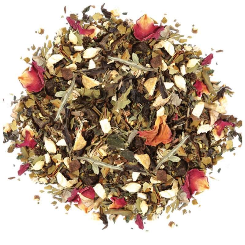 Thé vert Sencha*, morceaux de pomme*, thé vert Chun Mee*, arôme naturel de grenade, écorces de grenade*, arôme naturel de fleurs de sureau, fleurs de sureau*. *issu de l'agriculture biologique contrôlée