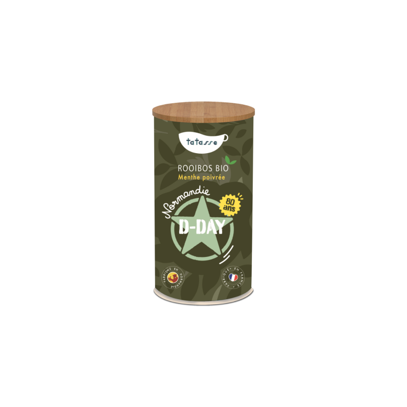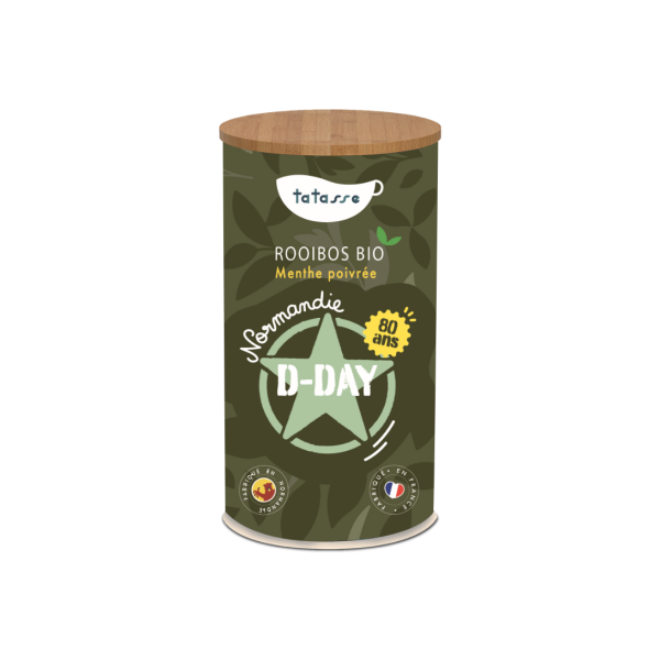 Le thé Rooibos Normandie D-Day est issu de l'agriculture biologique. Inspirée par le Débarquement en Normandie de 1944, cette création tire son nom de cette opération militaire majeure qui a marqué le début de la libération de la France. Vous sentirez un mélange de thé Rooibos allié aux feuilles de menthe poivrée.