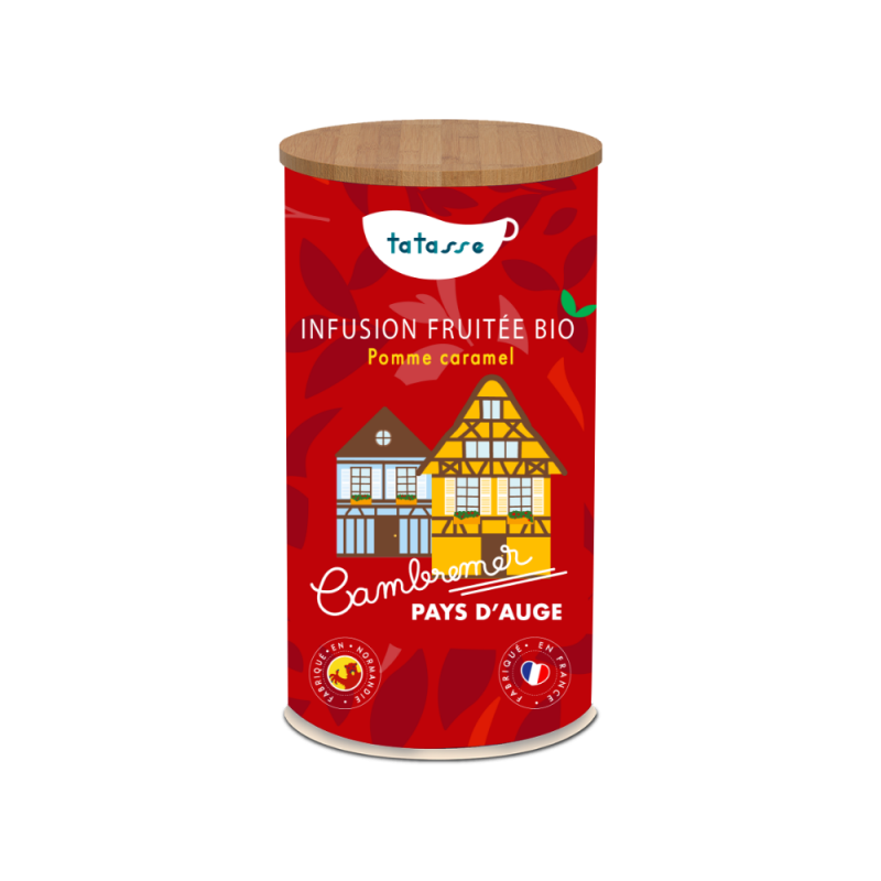 Le Cambremer Pays d'Auge est une infusion fruitée issue de l'agriculture biologique. Fruitée, cette infusion dégage des notes sucrées de caramel alliées à des notes de pomme. La tisane fruitée Cambremer combine également les différents arômes de cacao, hibiscus, fleurs de soucis parfaitement. Elle est idéale si vous recherchez une boisson gourmande et sans caféine.