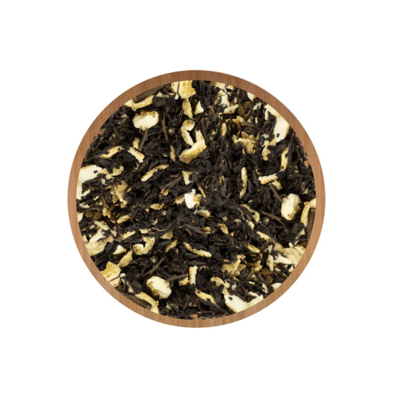 Mélange de thé noir* (Chine), pelures d'orange* (20,3%), gingembre*, clous de girofle*. *agriculture biologique contrôlée