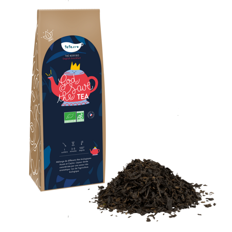 Une tasse de God Save the Tea et la journée peut commencer. Ce thé noir bio English Breakfast en vrac signé Tatasse s'impose comme le compagnon idéal des matins exigeants — celui qui réveille, réconforte et installe une belle énergie pour toute la journée. Son secret ? Un mélange de thés noirs biologiques de Chine, assemblés avec soin pour obtenir une liqueur d'un bel ambré profond, aux arômes maltés et subtilement boisés. En bouche, la structure est franche et généreuse. Il se déguste nature pour apprécier toute sa complexité, ou accompagné d'un nuage de lait pour une texture encore plus ronde et enveloppante. Issu de l'agriculture biologique contrôlée et certifié AB, ce thé noir incarne les valeurs fondatrices de Tatasse : authenticité, qualité et engagement. Proposé en vrac dans un conditionnement éco-responsable, il permet de doser à la perfection et de préserver toute la fraîcheur des feuilles, infusion après infusion. Faites de votre breakfast un véritable rituel — avec God Save the Tea, chaque matin mérite une tasse d'exception.