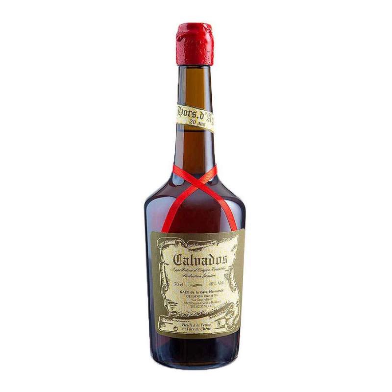 Le calvados Hors d'âge 20 ans est le produit d'exception de la famille Guesdon , brillant aux reflets bruns très foncés il a vieilli 20 ans dans les fûts de chêne du domaine.