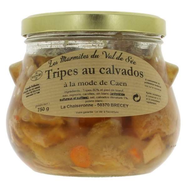 Plat cuisiné de tripes artisanales au Calvados Michel Ruault à Vire dans le Calvados Conserve en bocal Poids net : 380g