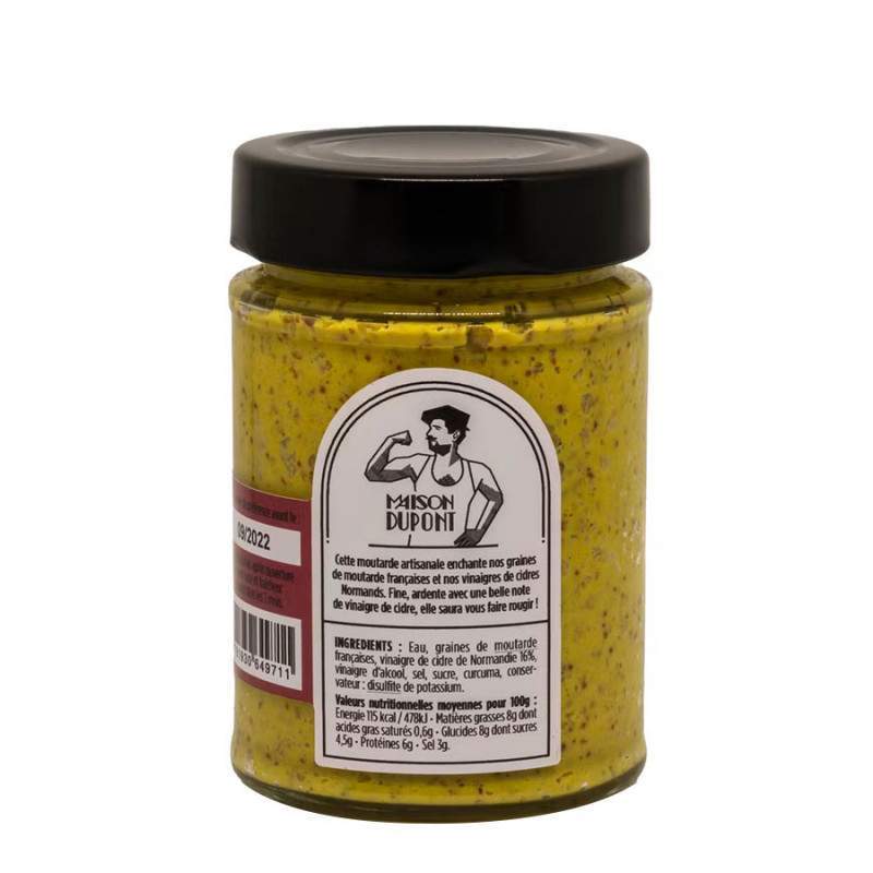 Cette moutarde de Normandie est élaborée par Richard Dupont, dans le 76 (Seine-Maritime). Passionné, ce moutardier-vinaigrier tenait à faire renaître la moutarderie anciennement à Yvetot. Fabrication artisanale engagée, la moutarde créée par Monsieur Dupont se démarque par sa composition à base de vinaigre de cidre de Normandie. De plus, elle est conçue avec des graines de moutardes françaises !