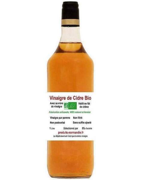 Vinaigre de cidre sans sulfites ajoutés Non pasteurisé, non filtré Production 100% Normande Élevé en fût de chaine