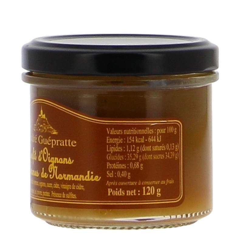 Le confit d'oignons d'André Guépratte est préparé avec du vinaigre de vin, de la purée de pommes de Normandie et du cidre artisanal.
