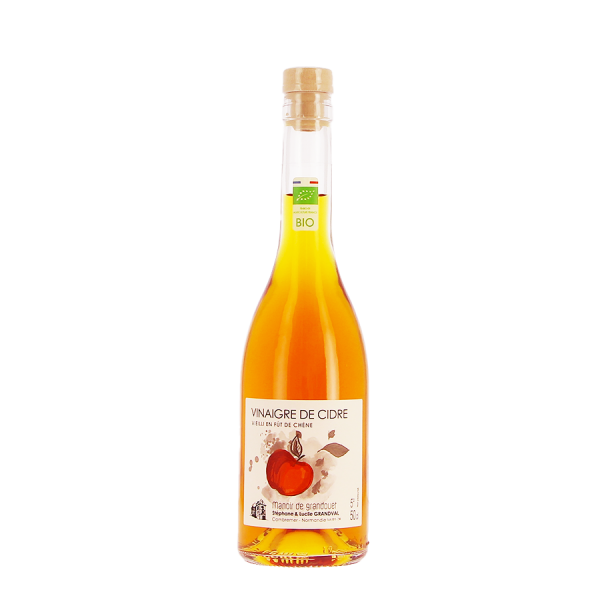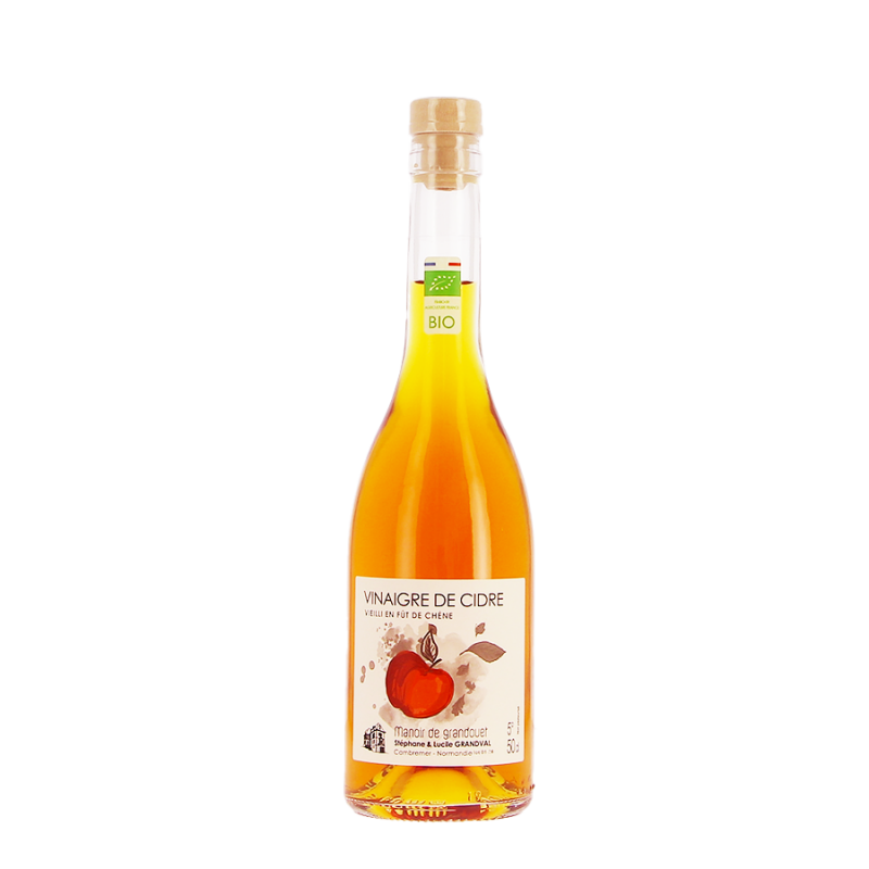 Ce vinaigre de cidre de pomme élaboré par Lucile et Stéphane Grandval contient 5° d'acidité. C'est à Cambremer, dans le Calvados, que se trouve le Manoir de Grandouet. En plus de sa production fermière de cidres et poirés normands, le Manoir de Grandouet vous propose un vinaigre de cidre élevé en fût de chêne. Le vinaigre de cidre du Manoir de Grandouet 50cl est issu d'un savoir-faire artisanal rigoureux. Élaboré à partir de pommes soigneusement sélectionnées et fermenté naturellement en fûts de chêne, ce vinaigre de cidre offre un goût harmonieux et des vertus incomparables.
