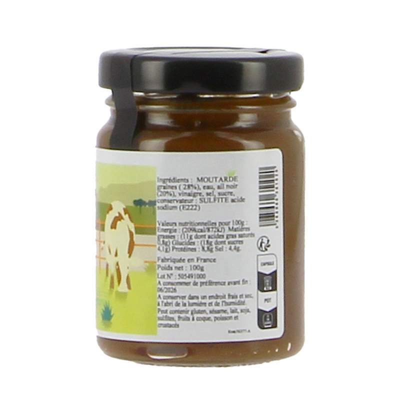 Moutarde graines, eau, ail noir, vinaigre, sel, sucre, conservateur : sulfites acide sodium